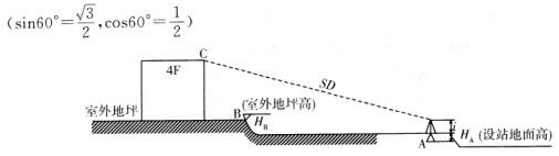 其中,办公楼高度采用电磁波测距三角高程测量法(见下图),测量了设站点A仪器到楼顶C点的距离(SD)和天顶距ZA;采用水准测量方法实测了室外地坪高程和设站点A的地面高程。一次观测得到如下测量数据:
