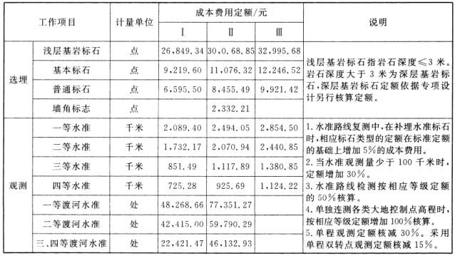 4个国家一等水准点,其中2个基本点和2个基岩点。根据测区实际情况设计埋设:二等点307个,其中基本标石点8座,普通标石点299座;三等点361个,全为普通标石点。(该地区为II地区)