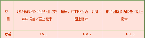 数字正射影像图基本技术指标要求见下表。