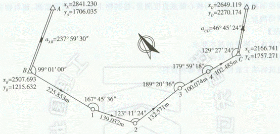 2小题>主要考查的是附和导线的内业计算。计算见此问答案中图表所示。