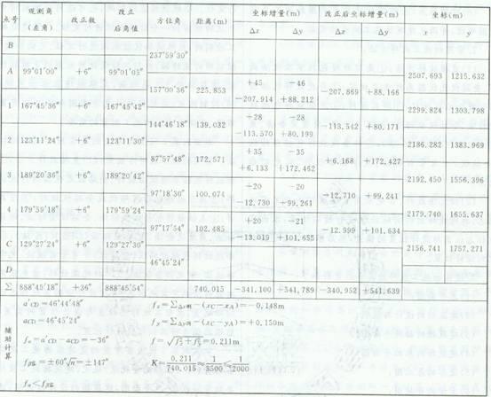 完成以上附和导线的内业计算。