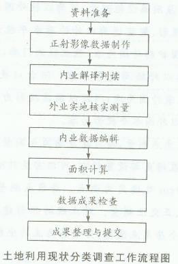 主要考查的是土地利用现状分类调查的工作流程。土地利用现状分类调查工作内容主要包括:资料准备、正射影像数据制作、内业解译判读、外业实地核实测量、内业数据编辑、面积计算、数据成果检查、成果整理和提交等八个主要环节。