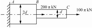 <p>圆截面杆ABC轴向受力如图,已知BC杆的直径d=100mm,AB杆的直径为2d,杆的最大的拉应力是( )。 <img