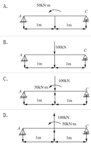 <p>简支梁AB的剪力图和弯矩图如图示,该梁正确的受力图是( )。 <img alt="" src="https://l