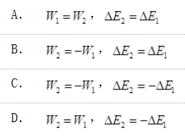 在卡诺循环过程中,理想气体在一个绝热过程中所作的功为W1,内能变化为△E1,而在另一绝热过程中气体做功W2,内能变化△E2,则W1、W2及△E1、△E2间关系为( )。