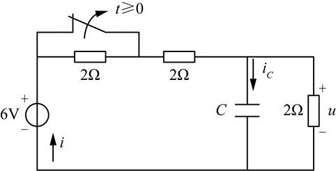 已知电路如图所示,设开关在t=0时刻断开,那么( )。