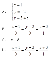 过点(1,-2,3)且平行于z轴的直线的对称式方程是( )。