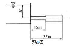 如题26图所示,过一组35m长的串联管道将水泄入环境中,管道前15m的直径为50mm(沿程阻力系数为0.019),然后管道直径变为75mm(沿程阻力系数为0.030),与水库连接的水道入口处局部阻力系数为0.5,其余局部阻力不计。当要求保持排水量为10m3/h时,则水库水面应比管道出口高多少?( )