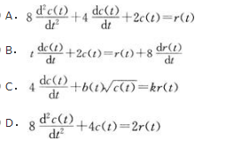 <p>下列描述系统的微分方程中,r(t)为输入变量,c(t)为输出变量,方程中为非线性时变系统的是( )。 <img alt