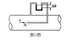 用水银比压计测量管中的水流,测得过流断面流速ν=2m/s,如题21图所示,则A点比压计的度数Δh为( )。