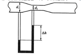 如图所示,用水银压差计+文丘里管测量管道内水流量,已知管道的直径d1=200mm,文丘里管道喉管直径d2=100mm,文丘里管的流量系数μ=0.95。已知测出的管内流量Q=0.025m3/s,那么两断面的压强差△h为(水银的密度为13600kg/m3)( )。