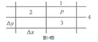 常物性有内热源(qc= C,W/m3)二维稳态导热过程,在均匀网格步长下,如图所示,其内节点差分方程可写为( )。