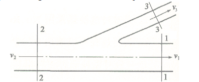 如图所示的汇流叉管。已知流量Q1=1.5m3/s,Q2=2.6m3/s,过流断面3—3的面积A3=0.2m2。则断面3—3的平均流速为( )。