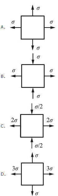 <p>在图示4种应力状态中,最大切应力τmax数值最大的应力状态是( )。 <img alt="" src="https