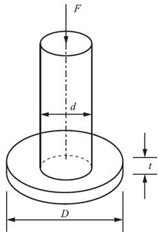直径d=0.5m的圆截面立柱,固定在直径D=1m的圆形混凝土基座上,圆柱的轴向压力F=1000kN,混凝土的许用切应力[τ]=1.5MPa。假设地基对混凝土板的支反力均匀分布,为使混凝土基座不被立柱压穿,混凝土基座所需的最小厚度t应是( )。