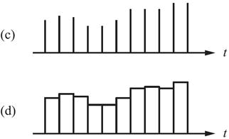 某温度信号如图(a)所示,经温度传感器测量后得到图(b)波形,经采样后得到图(c)波形,再经保持器得到图(d)波形,那么( )。