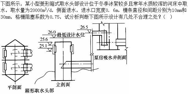 某地表水取水构筑物采用两个独立的顶面进水的箱式取水头和两根重力进水管引水,设计规模为24万t/d。水厂自用水率和原水输水管漏失率