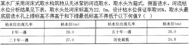 某地表水取水构筑物采用两个独立的顶面进水的箱式取水头和两根重力进水管引水,设计规模为24万t/d。水厂自用水率和原水输水管漏失率