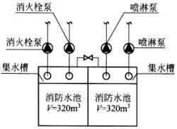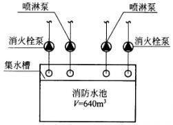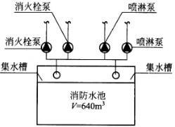 图中所示为某建筑消防水泵与消防水池平面布置设计示意图,哪个方案正确?并说明理由及依据。()