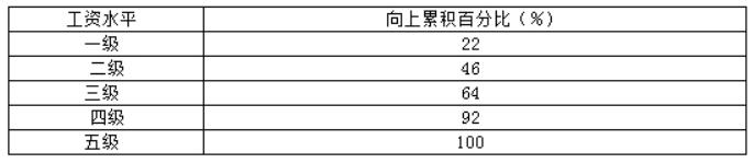 2015年某公司共有员工300人,这些员工的工资水平从低到高分为一级到五级。该公司员工工资累积频数分布表为: 则2015年该公司工资水平为五级的员工有()人。