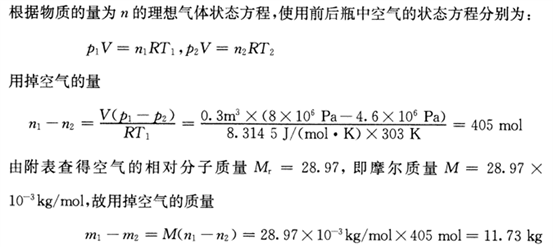 =303K的压缩空气启动后瓶中空气压力降低为P
