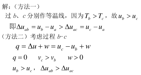 如图1,某种理想气体有两任意过程a-b和a-c,已知b,c在同一可逆绝热线上,试分析:△uab和△uac哪个大?