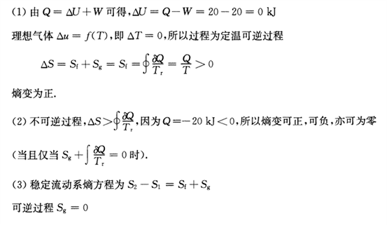 试判别下列几种情况的熵变是:(a)正;(b)负;(c)可正可负;(d)零。(1)闭口系中理想气体经历一可逆过程,系统与外界交换功量20kJ,热量20 kJ;(2)闭口系经历一不可逆过程,系统与外界交换功量20kJ,热量-20kJ;(3)工质稳定流经开口系,经历一可逆过程,开口系作功20kJ,换热-5kJ,工质流在系统进出口的熵变;(4)工质稳定流经开口系,按不可逆绝热变化,系统对外作功10kJ,系统的熵变。