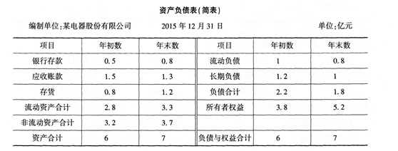某电器股份有限公司2015年实现销售收入3亿元、净利润0.3亿元。该公司2015年简化资产负债表如下: 该公司2015年的净资产收益率为()。