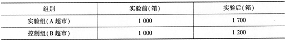 某糖果企业为了调查糖果更换包装的效果,选取A超市为实验组、B超市为控制组,进行控制组实验组对比实验,实验时间为一个月,实验前后的月销售量数据见下表。 该实验的实验变数效果为()箱。