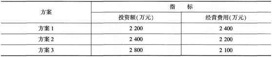 某技术改造项目有三个互斥方案,其投资额和经营费用见下表.