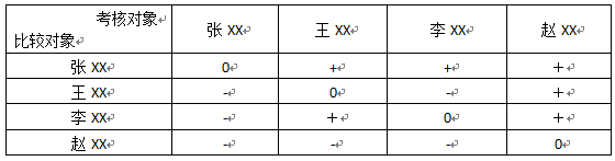 某企业某部门运用一一对比法对所属的4名员工进行绩效考核,考核情况下表所示(“+”表示考核对象比比较对象绩效水平高,“0”表示两者绩效水平相同,“-”的含义与“+”相反): 由此可知,绩效最好的员工是()