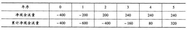 某投资方案的累计净现金流量如下表所示,根据该表计算的投资回收期为()年。