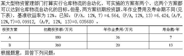 若B方案的净残值为100万元,则B方案的费用年值为()万元。