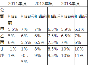 甲、乙、丙、丁、戊均是主板上市公司,拟于2014年3月发行可转换公司债券,2011年、20112年,2013年加权平均净资产收益率如下表: 则,不考虑其他因素,以下可以发行可转换公司债券的有( )