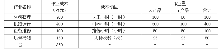 2018年6月,X、Y两种产品的产量分别为500台和250台,单位直接成本分别为0.4万元和0.6万元。此外X、Y两种产品制造费用的作业成本资料如下表所示: