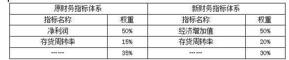 甲公司为一家在上海证券交易所上市的汽车零部件生产企业。近年来,由于内部管理粗放和外部环境变化,公司经营业绩持续下滑。为充分发挥业绩考核的导向作用,甲公司对原来单纯的财务指标考核体系进行了改进,新业绩指标体系分为财务指标体系和非财务指标体系。其中:财务指标体系包括经济增加值、存货周转率等核心指标;与原财务指标体系相比,用经济增加值指标替代了净利润指标,并调整了相关指标权重。财务指标调整及权重变化情况如表所示。