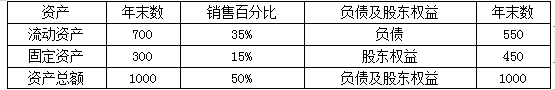 甲公司2015年销售收入为2000万元,销售净利率5%,现金股利支付率50%。公司预计2016年销售收入增长10%。资产占销售收入百分比不变,在考虑新增投资和内部留存融资的不足后,通过负债解决外部融资缺口。甲公司2015年资产负债表如下(单位:万元)。