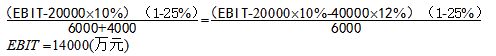 2.普通股的每股收益无差异点的EBIT应满足下列等式:
