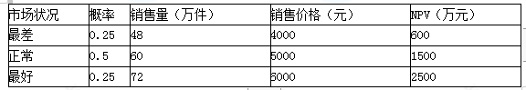 某投资项目投产的产品的销售量和销售单价会同时受到市场状况的影响,具体如表所示。 要求: (1)指出衡量项目风险的方法并说明该方法优点。 (2)计算预期净现值和净现值的标准差。