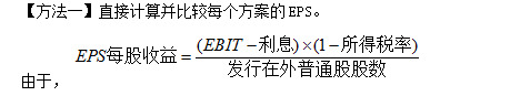 由于项目预计EBIT(15000万元)大于所测算后的无差别点,因此债务融资是最佳的。