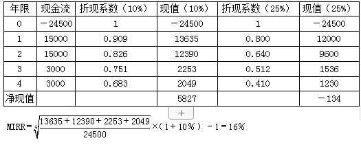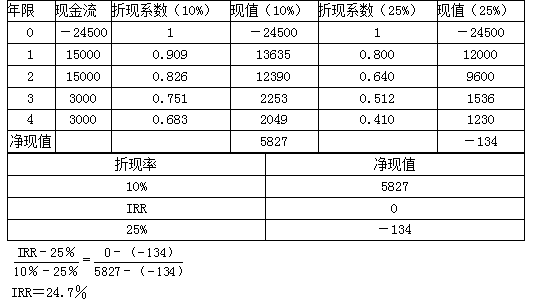 假设某项目需要初始投资24500元,预计在第一年和第二年分别产生净现金流15000元,在第三年和第四年分别产生净现金流3000元,项目的资本成本为10%。 要求: (1)计算传统的内含报酬率; (2)计算修正的内含报酬率。