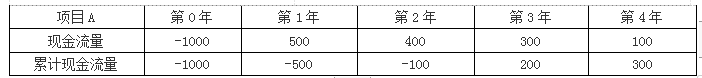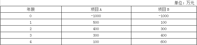 (1)计算项目A的非折现回收期 非折现回收期=2+100/300=2.33(年) (2)计算项目B的非折现回收期 非折现回收期=3+200/600=3.33(年) 结论:如果A、B为独立项目,则A优于B;如果为互斥项目,则应选择A。