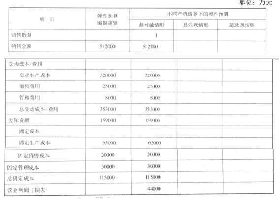 (1)该公司曾经尝试过常见的预算编制方法,其中,比较多的是采用固定预算法,此次探讨之后,拟渐进式采用更加适应市场环境的弹性预算技术,即选择一个最能代表生产经营水平的业务量计量单位为销售数量。即管理层在分析外部不确定性的特征之后,对销售收入、利润等财务指标,拟采用更加能够适应市场动态变化的弹性分析技术。2016年9月份,公司即启动预算编制。