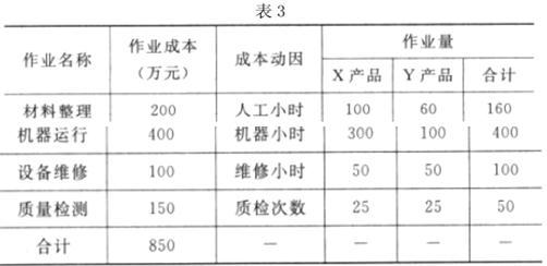 2016年6月,X、Y两种产品的产量分别为500台和250台。单位直接成本分别为0.4万元和0.6万元,此外,X、Y两种产品制造费用的作业成本资料如表3所示: