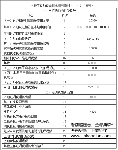 ②进项税额=10000+11760+1130.80+9880=32770.80(元)