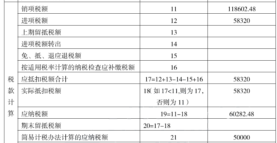 当月应纳的增值税=96000+8714.48+4320+7840+1728- ( 56320+2000) +50000=110282.48 (元)