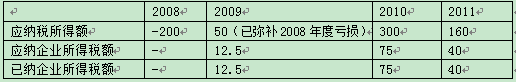 假定该企业2008年一2011年企业所得税纳税情况如下:单位:万元
