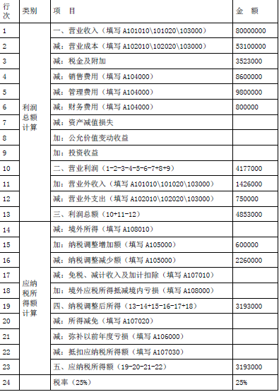 A100000中华人民共和国企业所得税年度纳税申报表(A类)