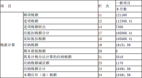应纳增值税=121160-(112308.41-7300)+2340=18491.59(元)