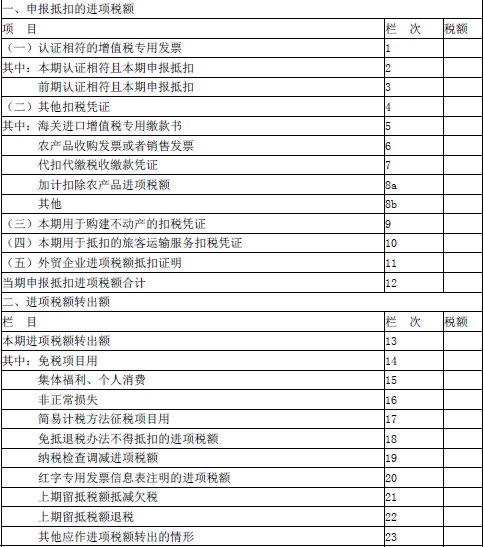 《增值税纳税申报表附列资料(二)》(摘要)